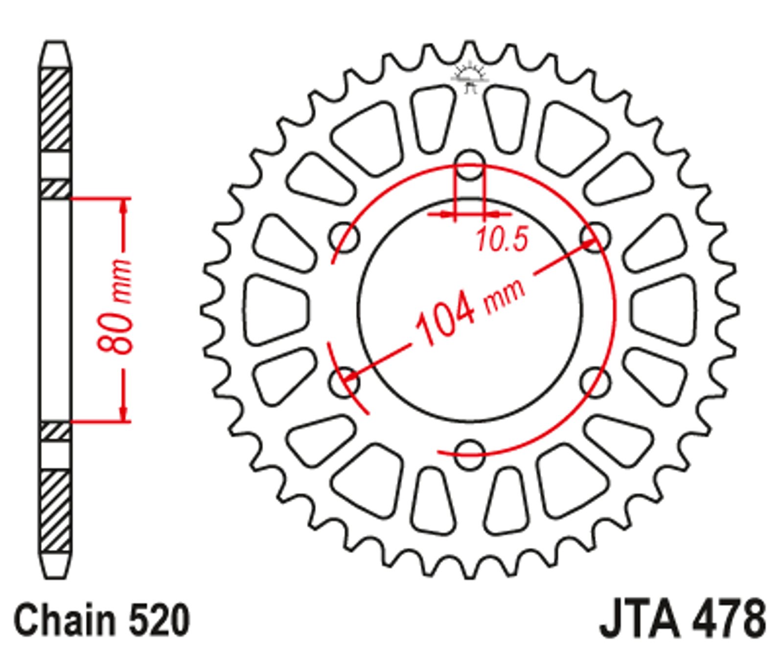Aluminijasti zadnji verižnik (zobnik) JT JTA 478-44BLK 44T, 520 Črn
