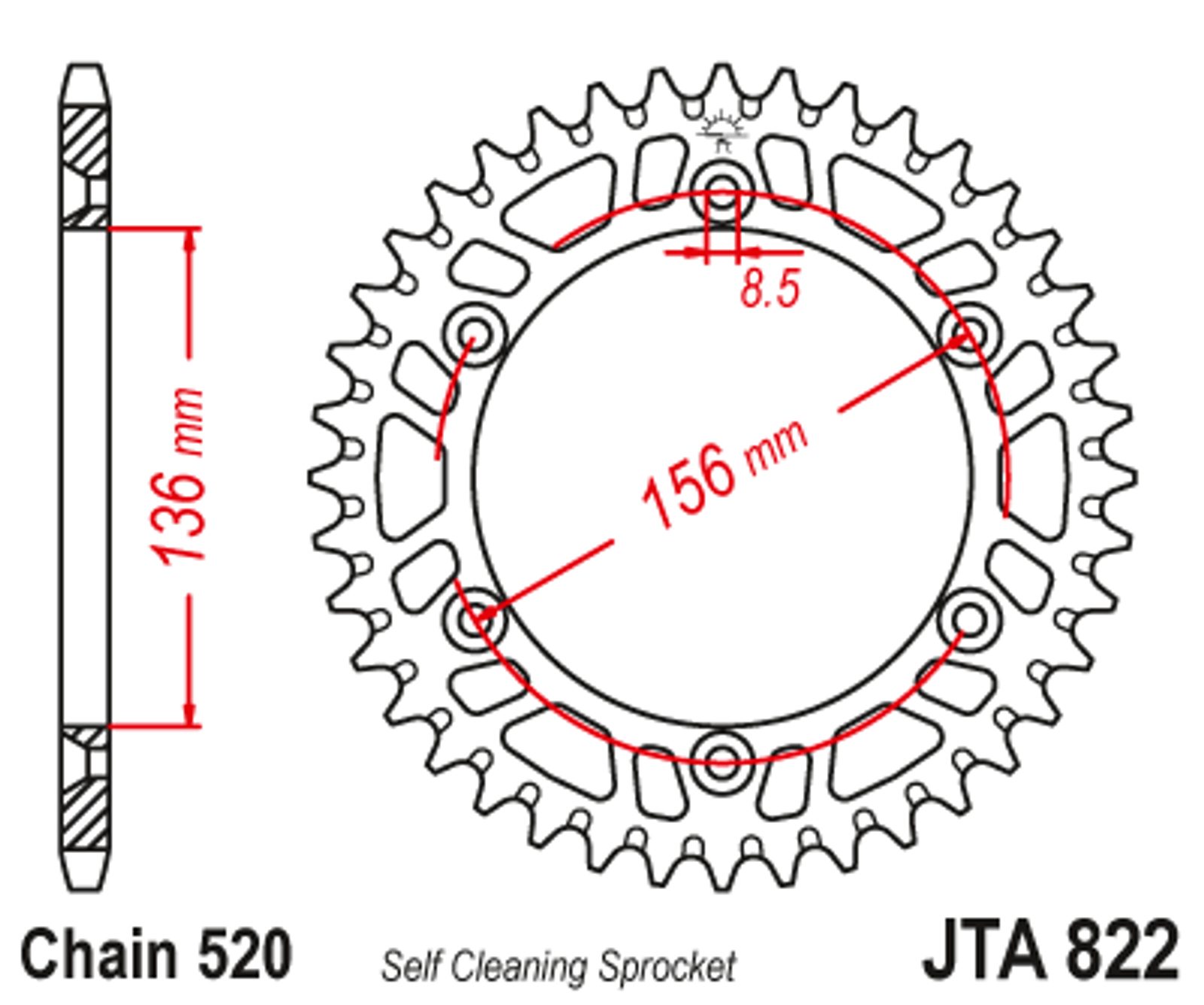 Aluminijasti zadnji verižnik (zobnik) JT JTA 822-50BLK 50T, 520 Črn