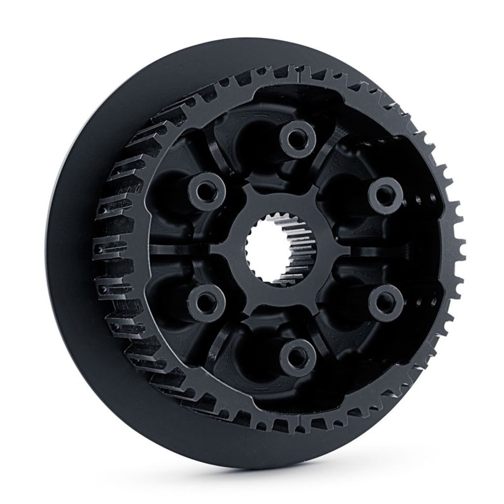 Improves clutch performance and life. Smoother more positive starts. Increased oil dynamics help keep the clutch cool. Improves heat dissipation. Helps eliminate clutch chatter. Allows clutch assembly to spin more true creating less heat when clutch is disengaged and providing a more positive, smooth clutch engagement. Precision machined from billet T-6 aircraft quality aluminum to aerospace tolerances, and hardcoated to provide a high resistance to wear* (*with proper maintenance). Can be used with all other OEM clutch baskets and clutch plates & springs* (*unless otherwise specified).
