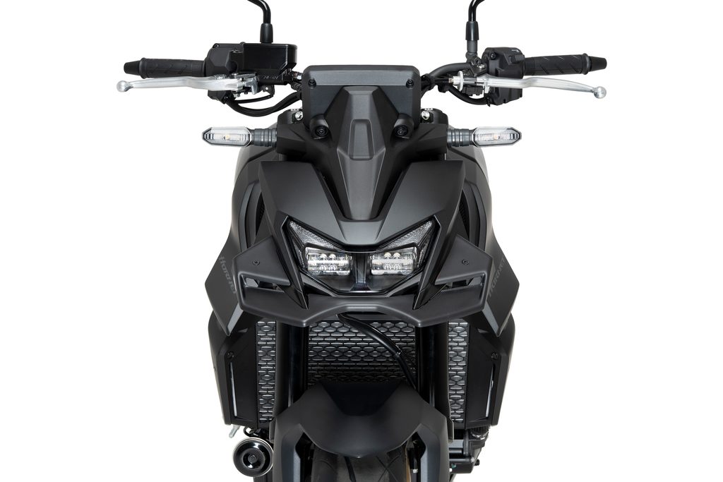 Designed in Barcelona with the most innovative technologies, the new Naked front spoiler is made of 3mm thick matte black ABS, a material highly resistant to any type of impact, which gives your motorcycle an aggressive and elegant look that you are looking for.