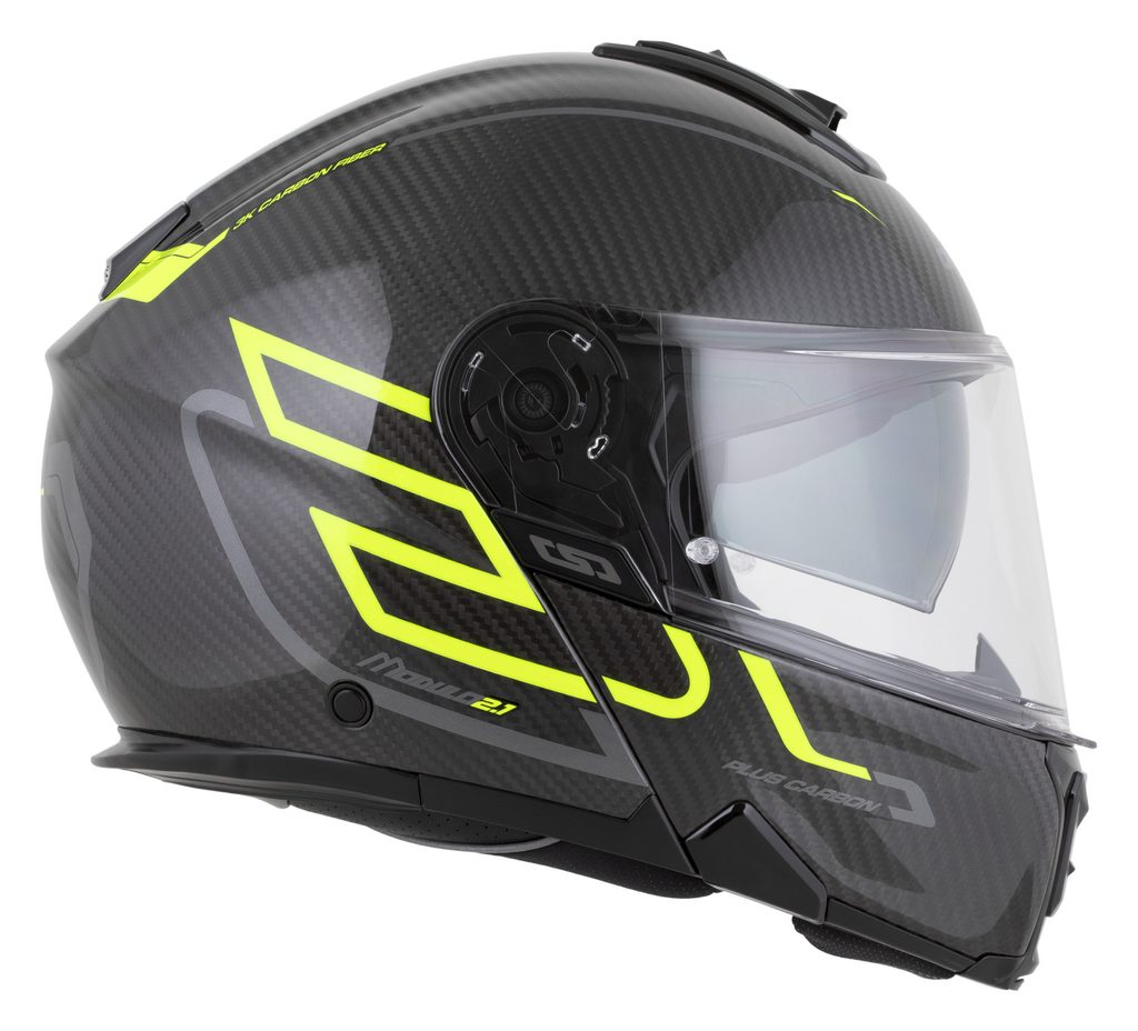 The Modulo 2.1 Plus Carbon helmet is a premium touring flip-up model with both the shell and flip-up section made from selected 3K carbon.