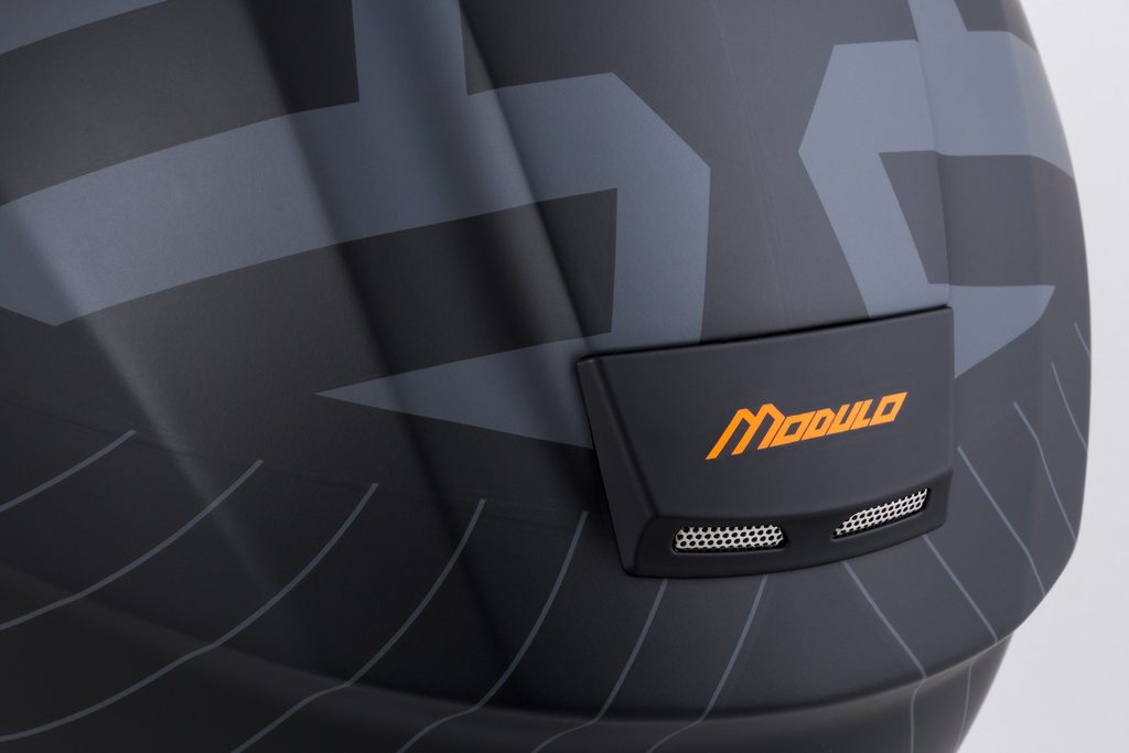 The Modulo 2.1 helmet is a touring flip-up model with a fiberglass shell and standards typical of the upper mid-range helmet category.
