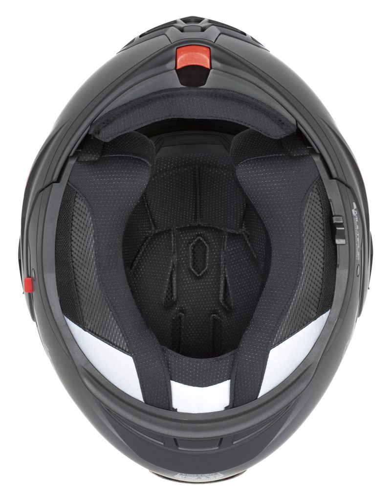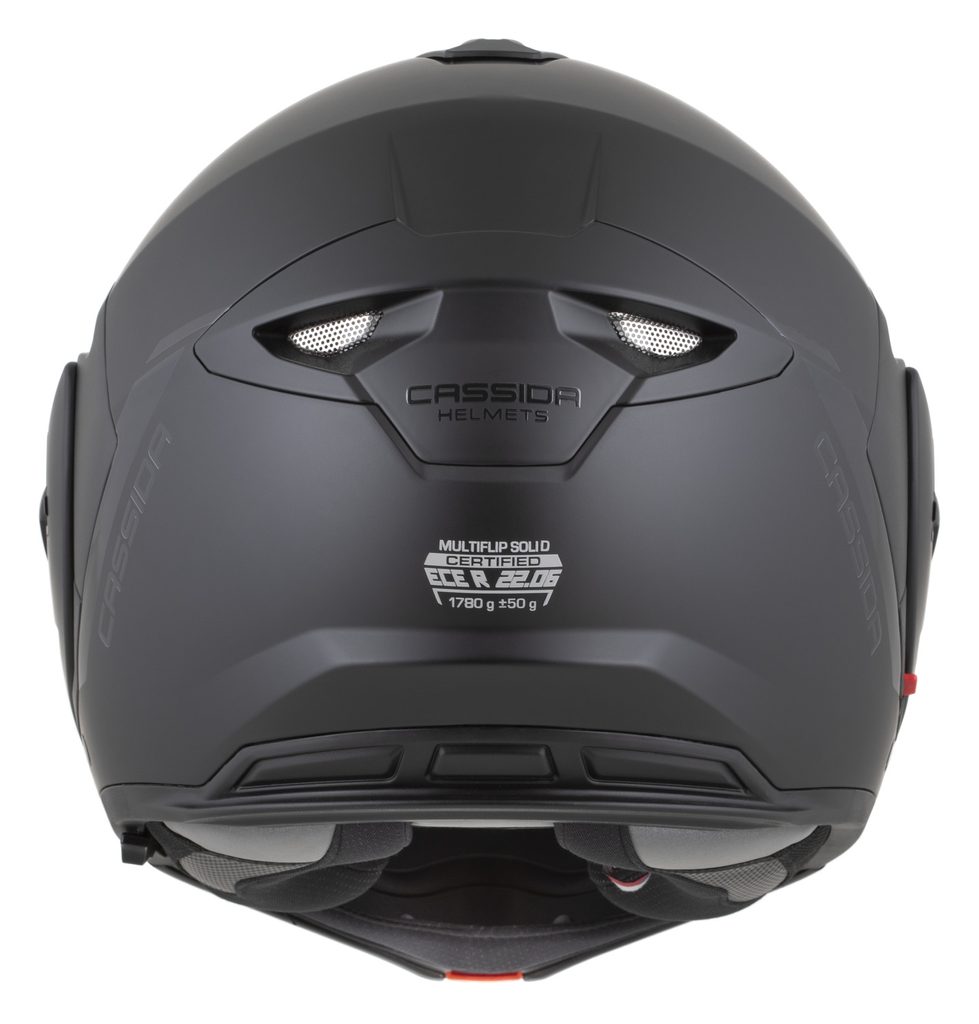 • Dual homologation ECE 22.06 P/J for both open-face and full-face use, with the option to lock the flip-up section in the open position using a safety latch.