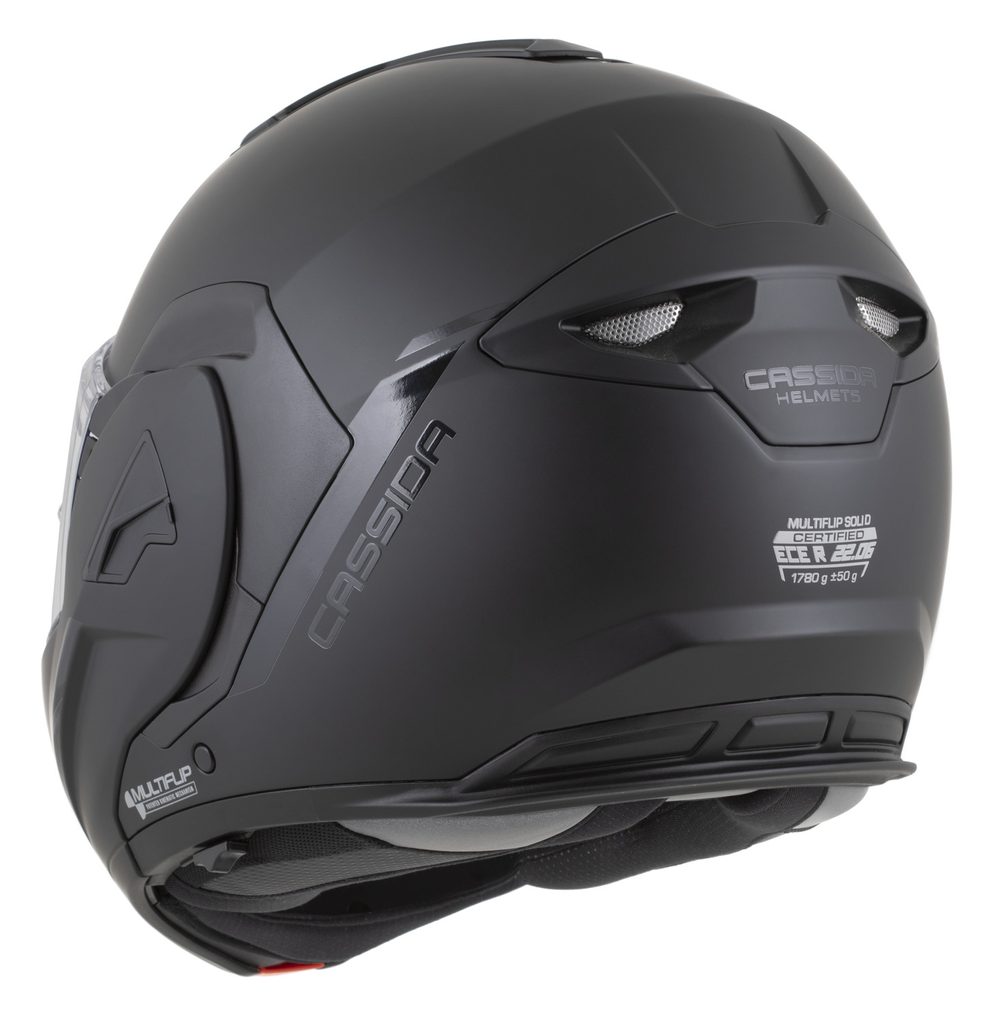 • Dual homologation ECE 22.06 P/J for both open-face and full-face use, with the option to lock the flip-up section in the open position using a safety latch.