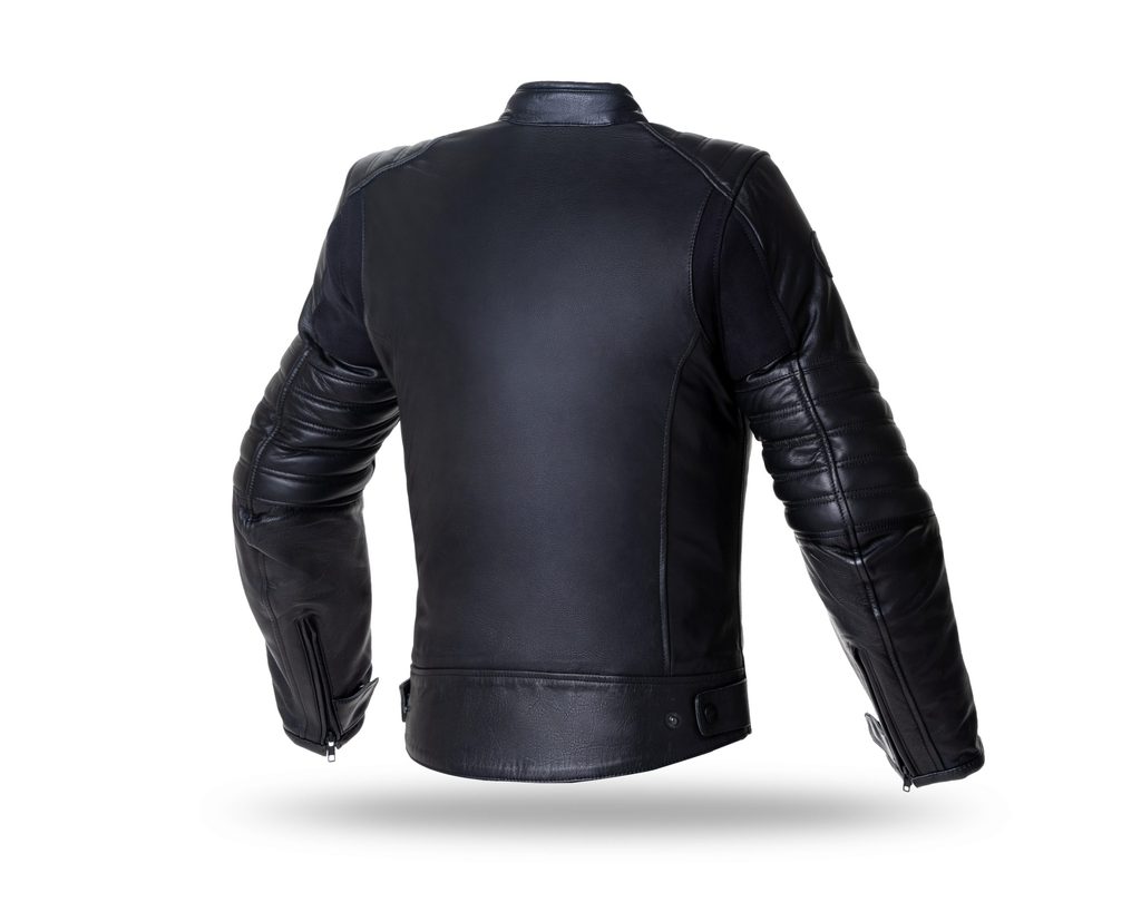 Cafe Racer winter jacket for men. Simple and elegant with diamond stitching design. Made in full analine bovine leather, with elastic fabric in flexible areas, and removable lining Prilation 100gr. Leather comfort collar. Button collar closure system with two adjustment positions. Wrists with zipper and button closure. Adjustable to the hip with button. Two zippered side pockets. Padded gussets at shoulders and elbows for comfort. YKK main zipper and YKK and MAX secondary zippers. Includes cell phone pocket. Removable elbow and shoulder protectors level 1 approved (EN1621). The protections can be replaced by Seventy Degrees level 2 protections (EN1621). Interior pocket for back protector (not included) level 2 SD-A10 certified to EN1621 standards.