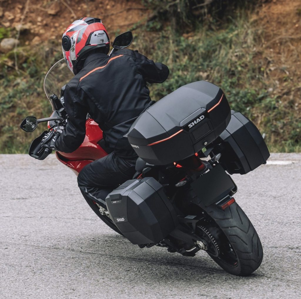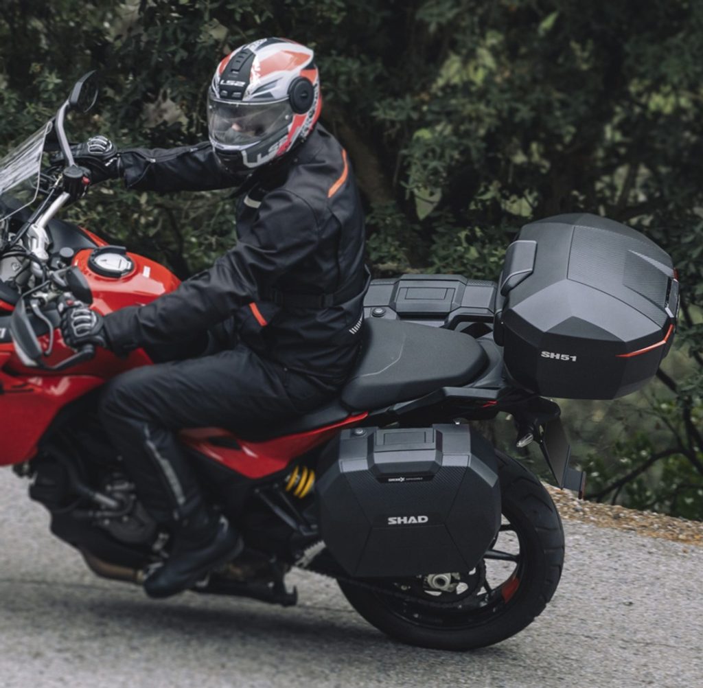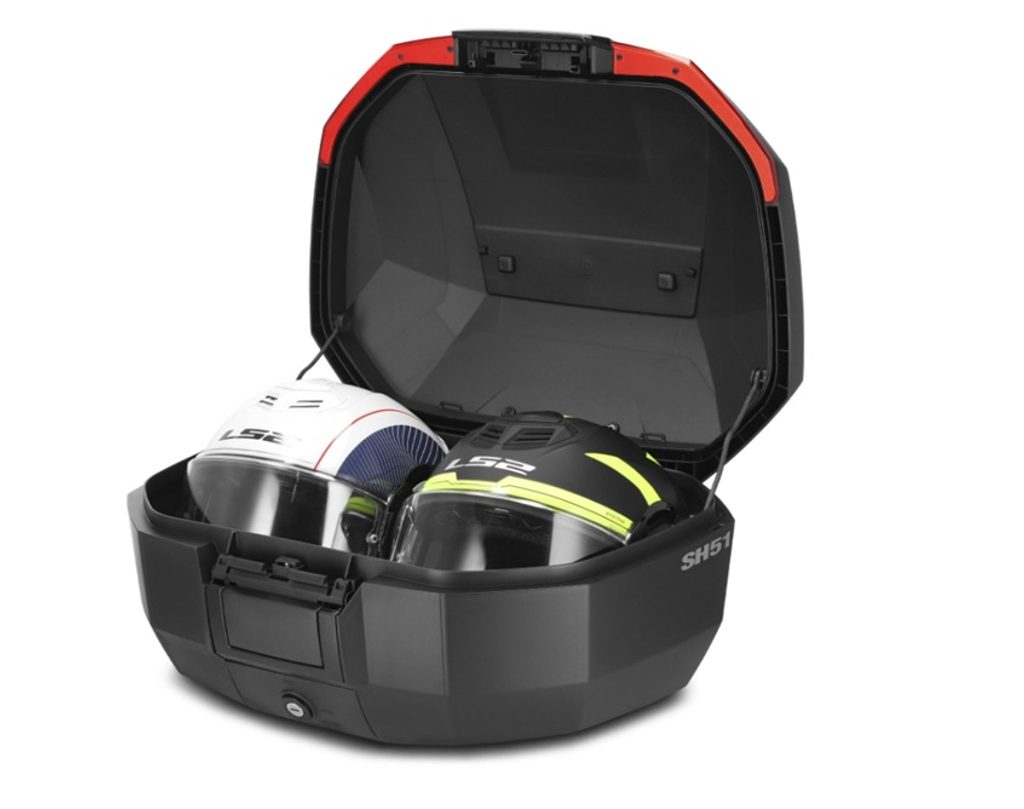 This adventure-touring top case holds up to two modular helmets (XL + M), supports a 10 kg load, and is ideal for both road use and light off-road rid