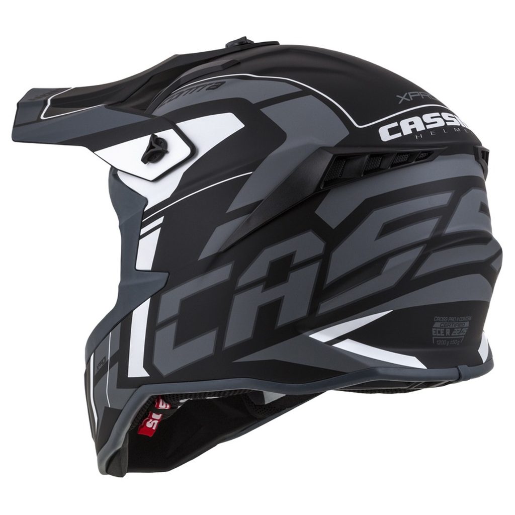 Cross Pro II helmet is successor of previous model which is released in Contra design line for season 2020. Fibreglass shell, adjustable peak with side alloy screws and top plastic screw for possibility of gentle shut down of peak during contact with ground. Inner lining is equiped by Cassida Safety Opening System (Cassida SOS) as the first model in Cassida helmets collection and printed design spice up whole lining. Easy to wash surface of interior of helmet and chin vent with carbon dust filter insert included in are details complementing whole product.