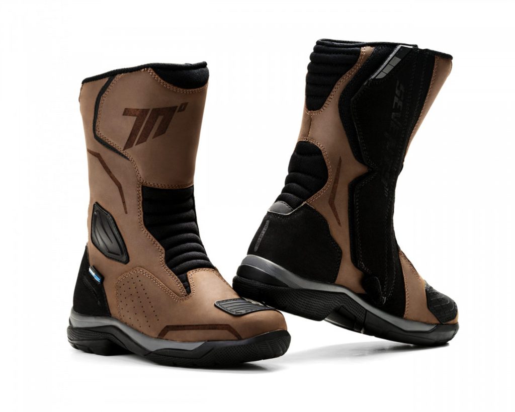 Unisex high-top waterproof Touring boot. Made of leather with PU and Nylon finish. With soft inner lining of micro-breathable fabric. Shin, heel, ankle and toe protections with instep reinforcement for gear shifting. Heavy-duty flex points for comfort with maximum protection. Reflective inserts in multiple areas to increase rider visibility. Non-slip rubber outsole with specific grip areas. Removable foam insole.