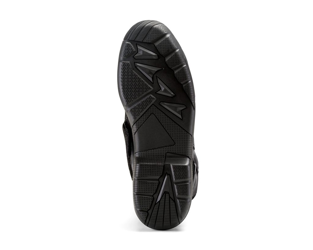 Unisex high-top waterproof Touring boot. Made of leather with PU and Nylon finish. With soft inner lining of micro-breathable fabric. Shin, heel, ankle and toe protections with instep reinforcement for gear shifting. Heavy-duty flex points for comfort with maximum protection. Reflective inserts in multiple areas to increase rider visibility. Non-slip rubber outsole with specific grip areas. Removable foam insole.