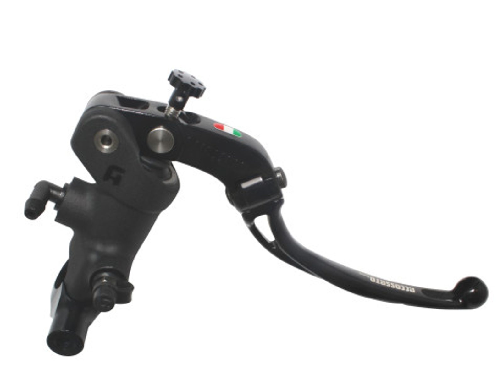 Accossato Radial Brake Master Cylinder For Motorcycles with 25,4mm diameter handlebarIn Forged Aluminium Black Anodyzing 19 x 20. The lever is colourf