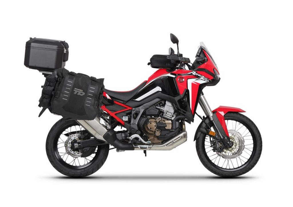 Set of SHAD TERRA TR40 adventure saddlebags and SHAD TERRA aluminium top case TR55 PURE BLACK, including mounting kit SHAD HONDA CRF 1100 L AFRICA TWIN