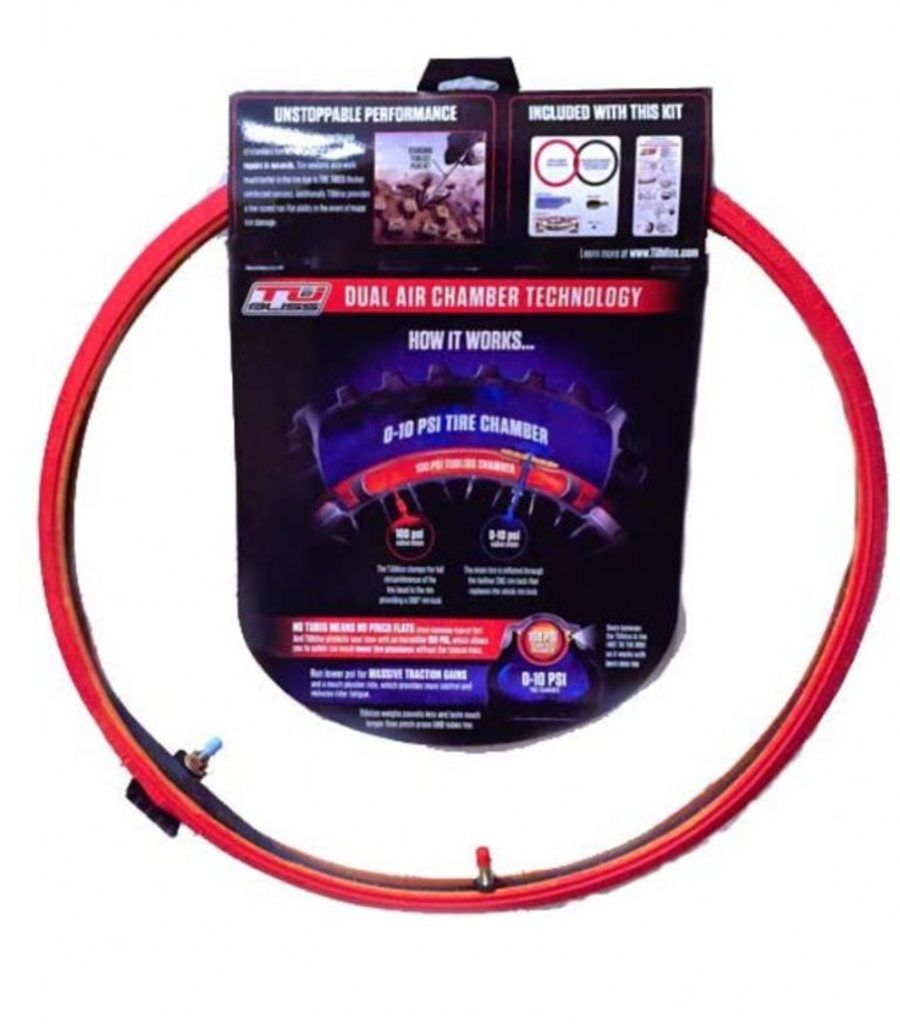 TUbliss replaces conventional inner tubes with a small red 100 psi insert that creates two different pressure zones inside the tire itself. This enables an incredible 100 PSI of rim protection, increased tire stability and eliminates pinch flats. In turn, this allows you to run very low tire pressure for massive gains in traction and a much plusher ride.