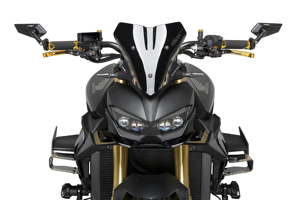 The mirror housing features a completely renewed design that combines a minimalist approach with a clearly aggressive and sporty character. Its clean, defined lines provide a modern aesthetic that adapts both to sport motorcycles and to more customized configurations. Each piece is machined from a solid block of aluminum, ensuring high structural resistance, durability and a high-quality finish. The assembly is then anodized, a treatment that not only improves protection against corrosion and wear, but also provides an elegant and sophisticated visual finish.