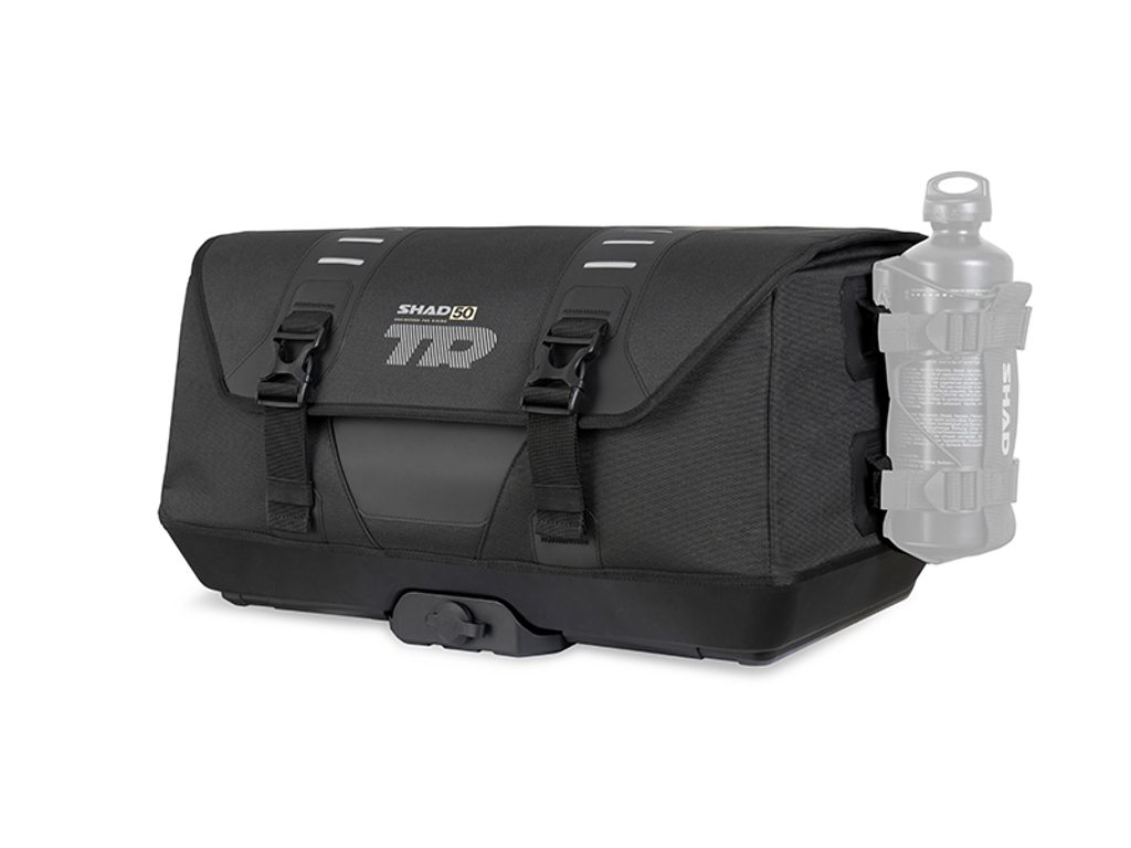The keys and lock cylinder of the TR50 are the latest premium version from SHAD, a system that reduces the chances of theft and has a cover that protects the cylinder from dust. All straps include clasps at their ends to prevent loose ends. The bag also has a carrying handle, shoulder strap, and reflective elements to increase visibility.