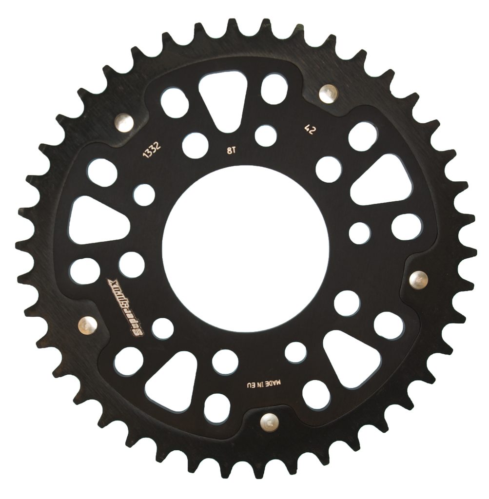 Patented Supersprox longlife/lightweight solution with strongest bond on the market. 3-times longer lifetime than TOP quality aluminium sprocket.