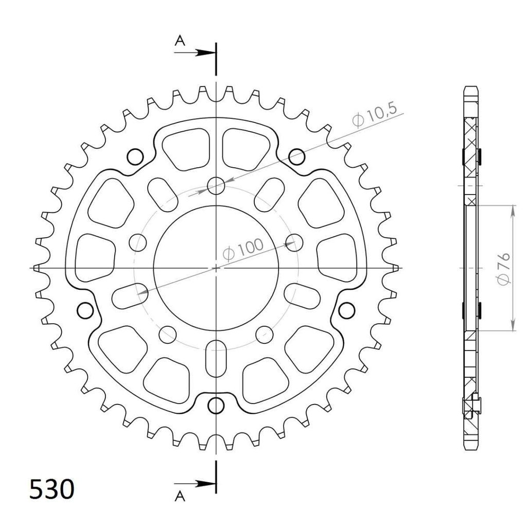 Zadnji verižnik (zobnik) SUPERSPROX STEALTH RST-7090:42-BLK črna 42T, 530